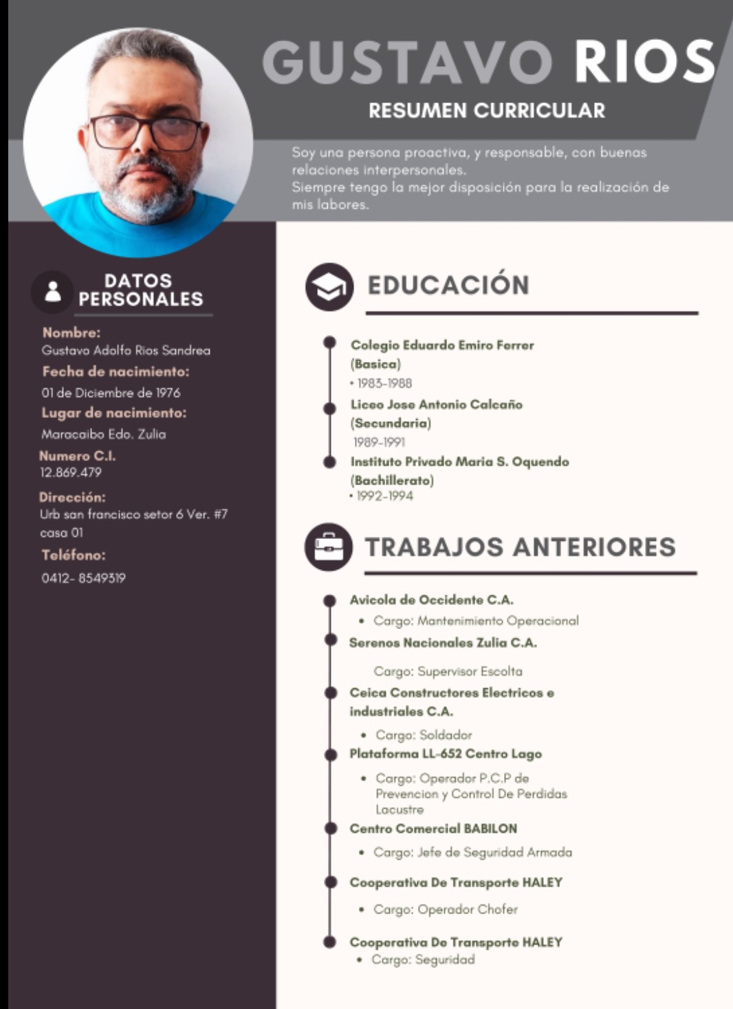 Soy un profesional comprometido y altamente colaborador, con una sólida capacidad para trabajar en equipo y contribuir al logro de objetivos comunes. Mi experiencia en diversas áreas me ha permitido desarrollar habilidades que optimizan el flujo de trabajo y fomentan un ambiente de cooperación. Estoy disponible de inmediato para asumir nuevos retos, aportando mi dedicación y proactividad para generar resultados significativos en la organización. Estoy convencido de que mi enfoque colaborativo puede agregar valor a su equipo.